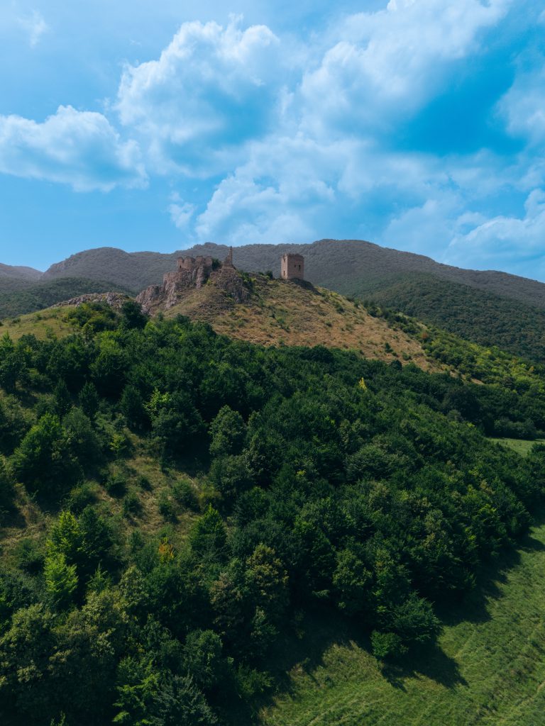 Close to the mansion is the Trascau Fortress. Although we didn’t have the chance to visit it, we did manage to send the drone as close as possible to capture some stunning footage of the ruins perched high on a hill, surrounded by the dramatic landscape.